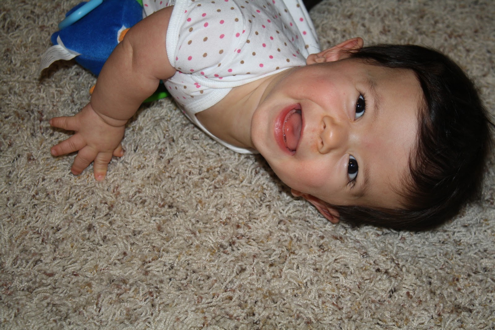 On a side note Madilynn is lifting her head a ton, but every time she does she lifts her feet up too. She balances on her tummy. Very cute but it's got to be a lot more work for her!